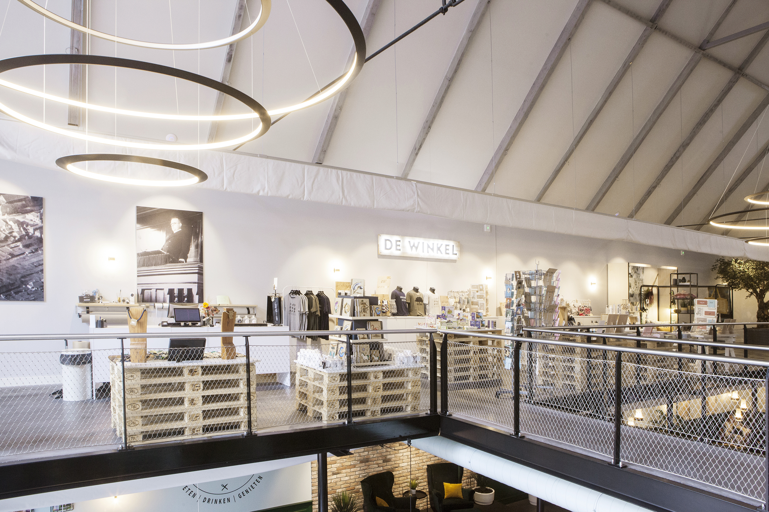 Op de eerste etage bevindt zich ‘De Winkel’. Een unieke cadeauwinkel waar je originele cadeau’s vind om weg te geven en iemand te verrassen. Maar ook leuke kaartjes, woonaccessoires van diverse bekende merken en degelijk (houten) kinderspeelgoed.